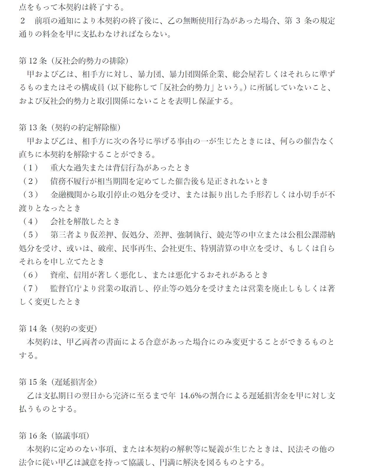 標準的な使用許諾契約(案)は下記の通りです。具体的な使用方法に応じてご相談に応じます。